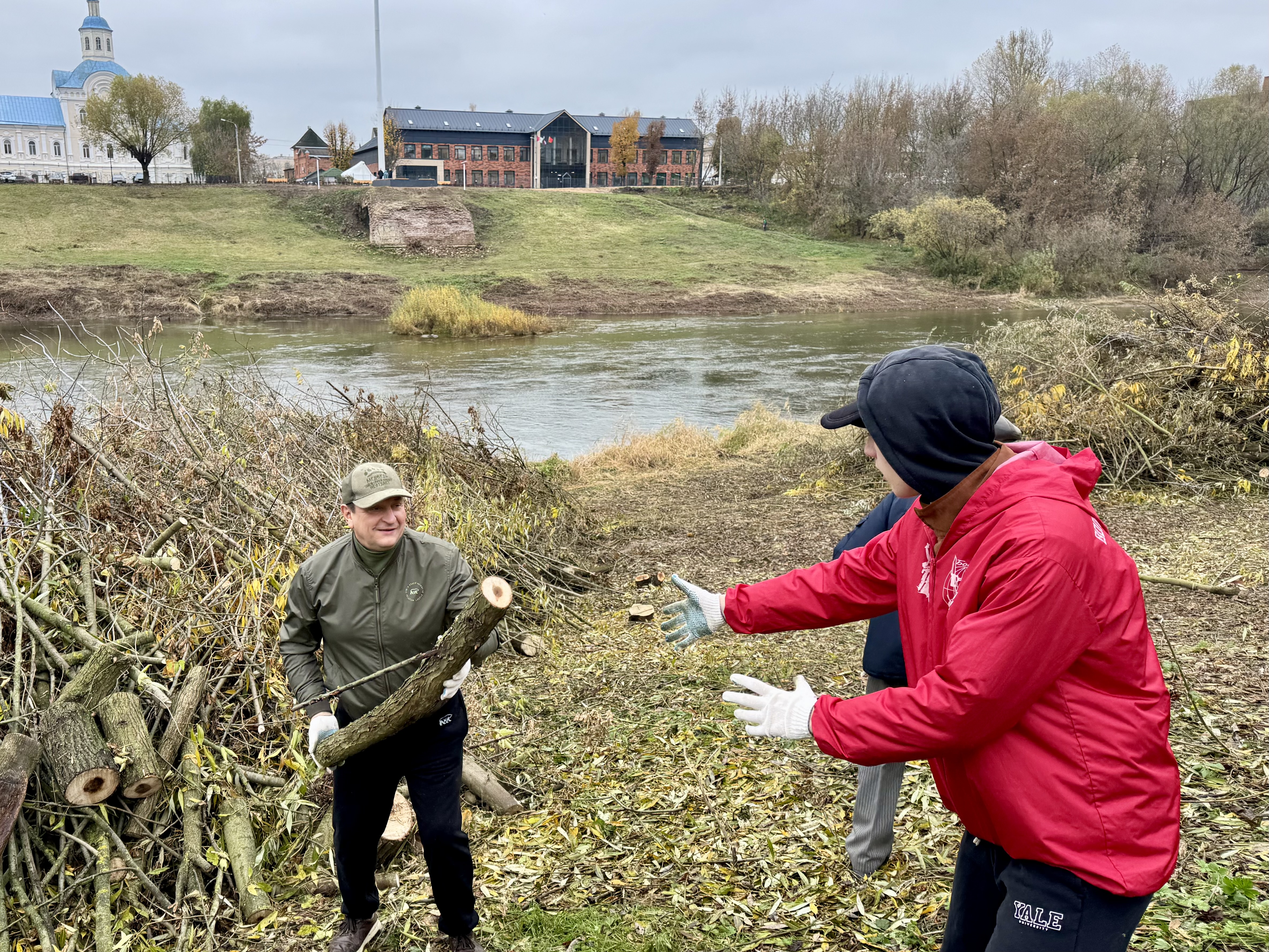 Крутой берег Днепра вдоль Крепостной стены – еще месяц назад здесь были заросли кустарника и груда мусора. Три недели назад единороссы пришли сюда на субботник - начали спил и уборку. Сегодня активистам предстояло вывезти с берега ветки и бревна.